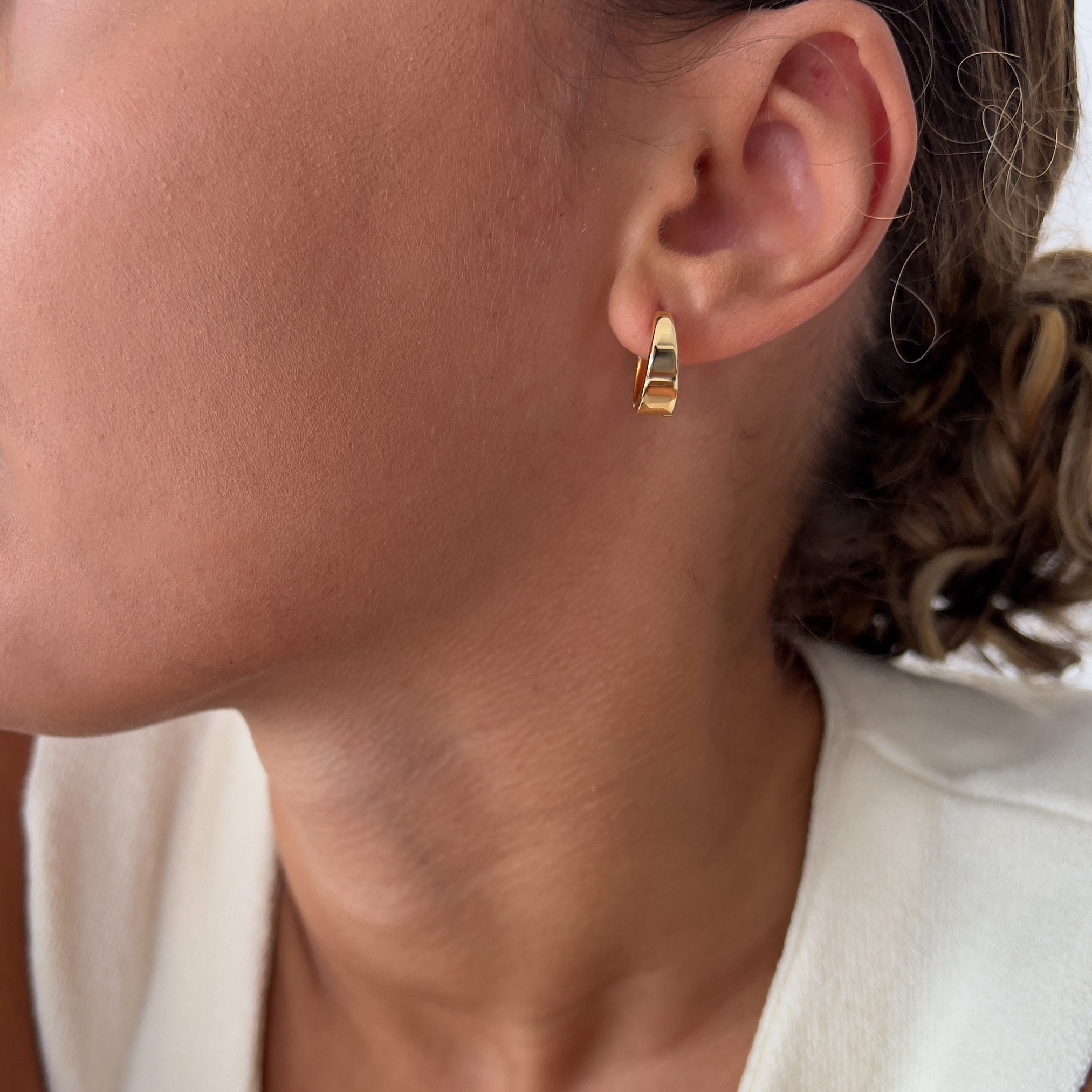 From the first wear, these hoops feel like they belong. Their curved silhouette is balance and presence sculpted in 18ct solid gold, finished with a quiet shine that catches the light.